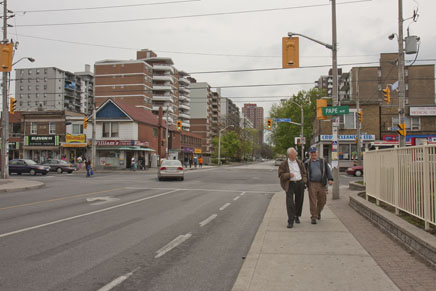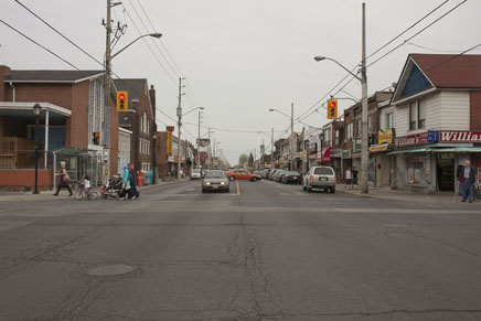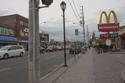 Cosburn station is located in the heart of Pape Village in the former borough of East York. The station serves the retail along Pape Avenue as well as the numerous mid-rise apartments in the area lining Cosburn, Gamble, and Gowan. The area is very similar to that around Bloor and Ossington in terms of density and retail, as well as distance from the core. Retail along Pape includes a number of bakeries and delicatessens, and is the site of a three day street festival in June30. Because of the similarities to Ossington, ridership is expected to be fairly high, with a modal split around 38-39%. The specific location at Cosburn lends itself well to rapid transit, as all of the mid-rise apartments in the neighbourhood are within a 10 minute walk of the station. It was due to this density and transit friendly location that Cosburn was chosen over O'Connor to locate a stop at. While O'Connor may be a slightly more important street, the area around Pape and O'Connor is very low-density, and can be well served by existing buses to Broadview station. There exists redevelopment potential along Pape Avenue, as existing retail such as the McDonald's Restaurant can be included in street-level retail of new buildings. Only one bus route would connect to the station, but that would provide those living east on Cosburn a much faster trip downtown minimizing the number of transfers required. Cosburn is located in a vibrant neighbourhood that would see a high level of ridership regardless of any potential future development. It is a valuable station that can easily justify its construction cost.