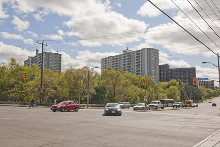 Islington North station is located at Islington Ave. and Dixon Rd. It serves the eastern parts of the Kingsview Village and Westway neighbourhoods, as well as connecting with more density to the north via the 37 Islington bus. It also connects with the 58 Malton bus. Islington North is one of the few areas outside the designated "centres" in Toronto where the density already exists to support a subway even without future development Twelve major apartments exist within 500m of the station, with three more only a few metres further to the north on Islington. Despite having very high density for a suburban area, this neighbourhood is currently poorly served by transit, with the nearest subway station being more than six kilometres away, and then a long ride downtown from the existing Islington station. There is easily the density around this neighbourhood to support a new subway. Despite already having the recommended density for a subway, there is still room for new development to push density levels even higher. The former Loblaw's on the southeast corner of Islington and Dixon sits unoccupied, and can fit multiple large buildings that should be in high demand given proximity to transit, parks, and Highway 401. Density could reach around 130 people + jobs / hectare. Islington North would be a well used station, providing efficient transit to a densely populated area and creating a faster trip downtown for those north of it.