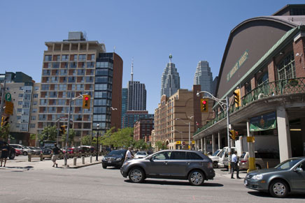 St. Lawrence station is located in the heart of the St. Lawrence neighbourhood at Jarvis and The Esplanade, beside Toronto landmark St. Lawrence Market. The 75 Sherbourne bus connects the station with Sherbourne Station on the Bloor-Danforth line via Sherbourne St. The St. Lawrence neighbourhood is a diverse mix of old and new, containing some of the oldest buildings in the city along Front, as well as newer buildings along the Esplanade. It is home to a number of festivals and events, including Woofstock in June and Buskerfest in August. Tours consistantly operate in and around the neighbourhood. The area around the station is both incredibly dense, similar to Bay Station, and also a healthy mix of residential and business, with approximately 2/3 of the density being comprised of employment. The station can also draw riders beyond simply commuters, with St. Lawrence Market being a significant regional draw for buying fresh meat and produce. Despite the age of the neighbourhood, redevelopment is occurring where possible, but it is questionable how much space exists beyond what is planned. Market Wharf condominiums will occupy the parking lot seen in Google Maps between Jarvis and Market street, while buildings such as The Berczy are replacing less important buildings in the area. While there is no doubt some more possibility for some infill and redevelopment where possible, it appears as though opportunities are going to be low. Despite the minimal number of redevelopment opportunities, the density levels of the station are already five and a half times what the TTC recommends for a successful station. Few stations in the current system have these levels of density. It is clear that St. Lawrence would be a very highly used station.