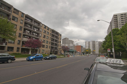 Thorncliffe Park station would serve the neighbourhood of Thorncliffe Park, one of the most dense residential neighbourhoods in the City of Toronto. In addition to the cluster of high-rise apartments, the station would serve the East York Town Centre, allowing an easy connection for shopping for the residents of Flemingdon Park one stop north. The density of the station is similar to that of St. Clair on the Yonge line, and also close to both Spadina and St. George stations. Ridership is therefore estimated to be very high, with a projected modal split of 39%. The creation of the Downtown Relief Line can replace the 81 Thorncliffe Park bus as the route overlaps completely, and at this point stop density of the stations is close enough that it is doubtful surface transit would need to run in addition to the subway. Thorncliffe Park has little room for redevelopment, but it is definitely not necessary given the already high levels of density in the area. It is possible that some development could occur where the East York Town Centre is located, but there is not a lot of room and it would be difficult to proceed without massive reconstruction. Thorncliffe Park Station could have some of the highest walk-up traffic in the system, and provides the residents of this neighbourhood the higher-order transit that they deserve.